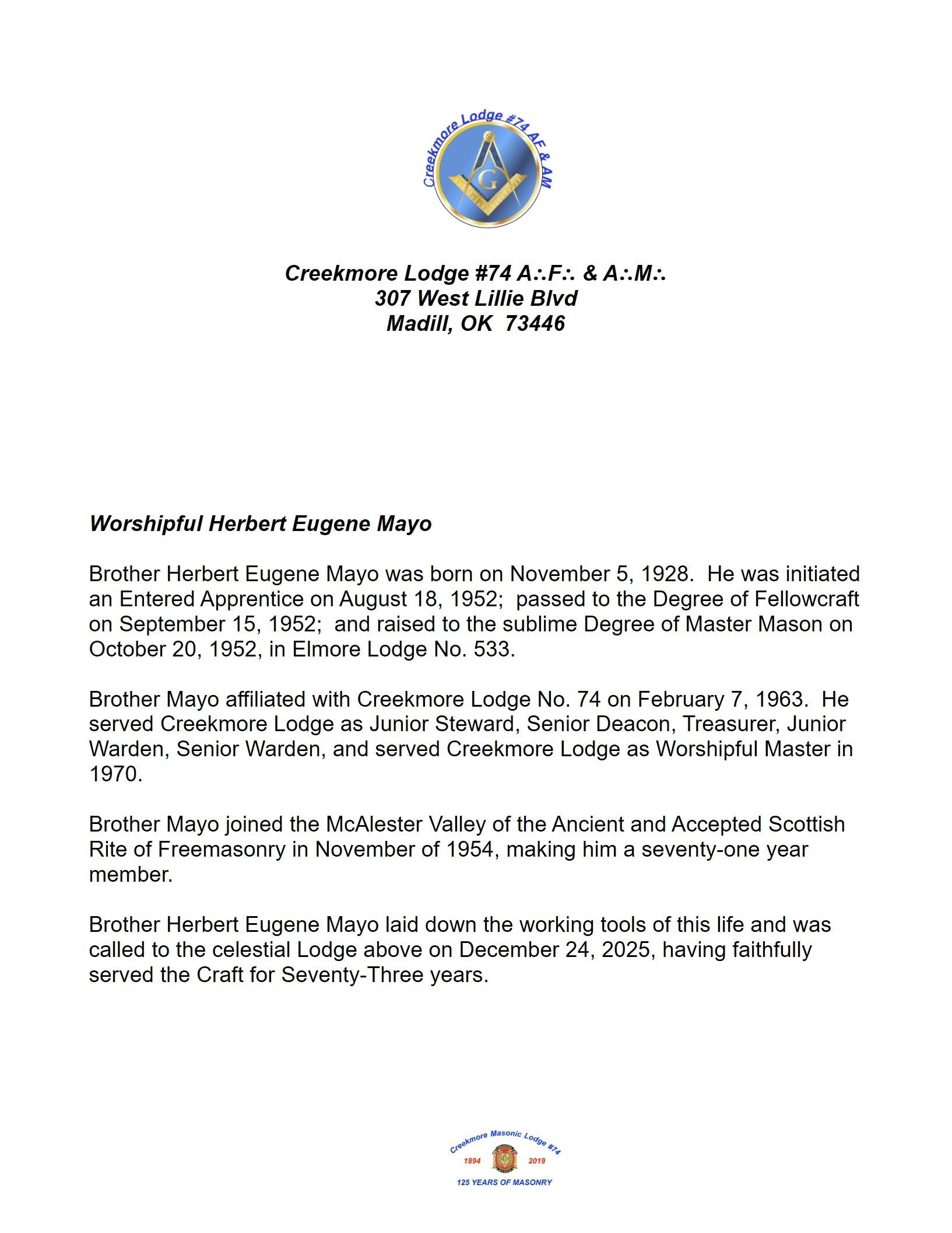 Creekmore Lodge #74